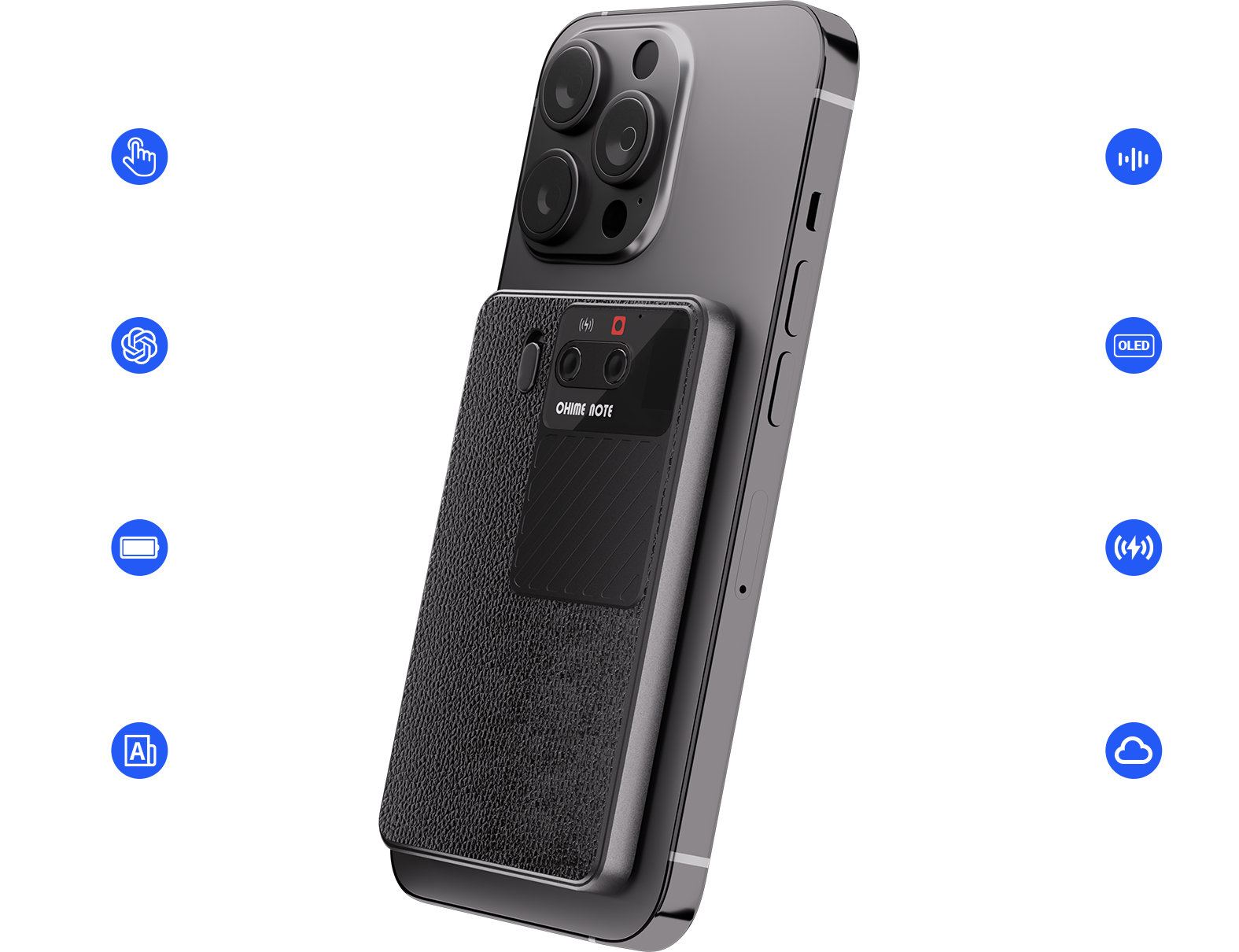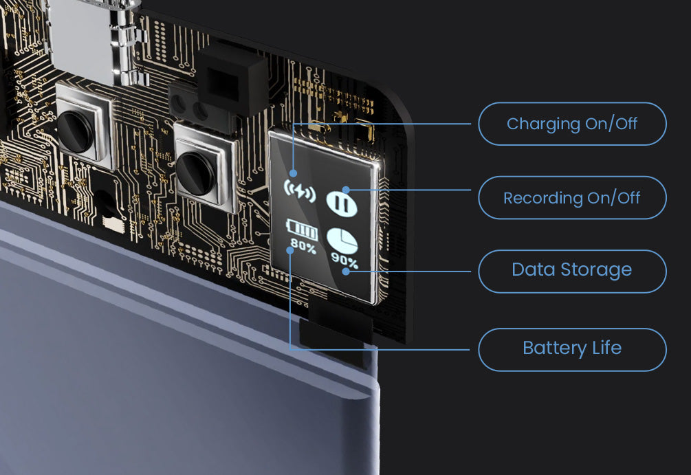 The OLED screen on Chime Note shows memory and battery usage, letting you easily monitor recording and charging status at a glance.